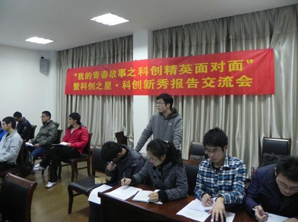 在科创精英做完报告之后,进入自由问答环节。台上的嘉宾与台下同学就研究生的学术之路相互交流、相互倾听、相互辩论、相互启发。整个交流会上大家积极热情,求知若渴,兴趣洋溢,轻松活跃。最后,现场主持人向各位嘉宾致送纪念品,报告交流会在一片欢快娱乐的气氛中圆满结束。