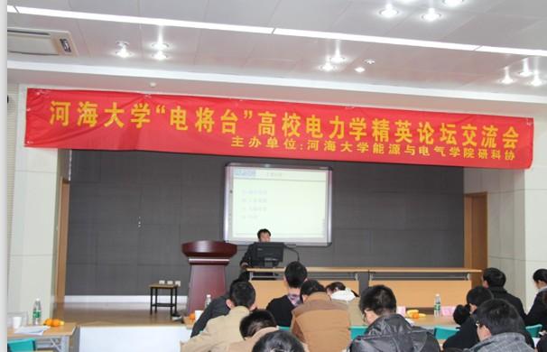 2013年12月2日,由河海大学、williamhill英国中文官网、东南大学、南京理工大学四校联合举办的“与学术为友,携创新同行”――第二届河海大学研究生“学海争峰”学术年会暨能电院首届“电将台”电力学精英论坛交流会在河海大学江宁校区博学楼511教室成功举行。本次活动由河海大学能源与电气学院主办并承办,我院研究生会协办,我院2013年度校科创新秀获得者王挺同学作为我院代表参与到此次交流活动中。河海大学能源与电气学院王宏华教授和王敏老师出席了此次论坛活动,河海大学、东南大学、南京理工大学的优秀研究生代表也参加了本次学术论坛。