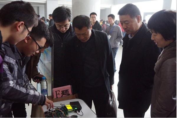 决赛于下午两点整开始。高级组、初级组共7个组别,36支学生团队参加了本次决赛的角逐。决赛分为作品调试及评委提问两个环节,评委由解放军理工大学潘克修教授、徐志军教授、南京工业职业技术学院狄建雄教授、南京邮电大学林建中教授等13位校内外专家组成。决赛现场,专家评委从技术功能、指标参数、工程实践等多个角度对各参赛队的作品进行了评判打分,并对各参赛队提出了中肯的意见和建议。低年级同学也慕名来到现场观摩,评委、参赛队员、观众的互动使决赛现场气氛非常热烈。