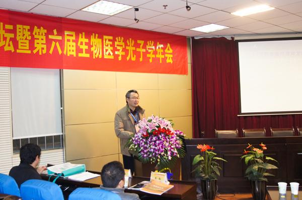 江苏省生物医学工程学会副理事长兼学会常务副秘书长、生物医学光子专业委员会主任钱志余教授主持开幕式,江苏省生物医学工程学会理事长顾宁教授致欢迎辞,省科协学会部冯异香副调研员主持生物医学工程学会的江苏新无限医疗设备有限公司科技服务站授牌仪式。