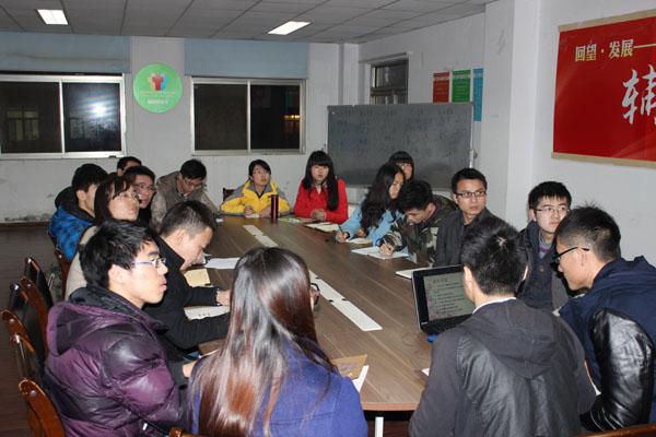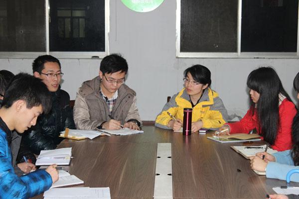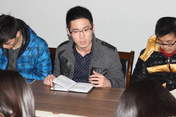 首先各中心组组长进行总结和展望。大一的孙凯同学回顾了上学期工作重点――学风建设,力求做到:监督、竞争、互助。王玉佩同学计划将工作重心从新生适应力转移到学风建设上,做到高效、实际、深入学生。大二的开鑫同学在过去的两年里带领中心组成员发掘年级同学的特长,建立起年级人才库,并完善反馈机制,聆听学生需求,成立帮扶小组。郭凯源同学通过开展寝室评比、趣味运动会等活动旨在建立服务型、娱乐型学生组织。大三的张玉刚和黄煜同学表示年级中心组将在升学及就业方面提供同学们更多、更优质的服务。
