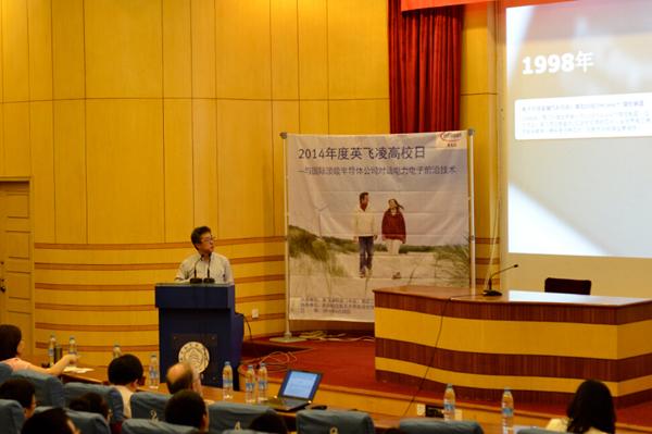 下午2点30分,英飞凌高校日活动正式开始。首先,刘鲁伟先生为现场观众介绍了英飞凌公司的概况,从发展历程到市场状况,从产品种类到技术创新,让大家对英飞凌公司有了进一步的了解,也惊叹于英飞凌公司对电力工业发展作出的巨大贡献。