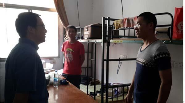 迎新过程中,WilliamHill中文官方网站副院长赖际舟来到迎新现场视察指导工作,并亲切慰问了在现场的工作人员。随后赖院长走访了学生宿舍,与研究生新生同学进行了亲切地沟通交流,了解新生们的思想和生活现状,嘱咐新生尽快地适应研究生生活,得知有新生刚入校因运动而骨折,院长关心了解其日常起居生活,希望其尽快康复,尽快投入到研究生的学习生活中。