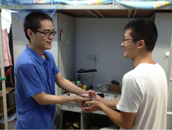 大家在宿舍里开心地吃着月饼,聊着天,谈论各自在实验室的学习生活,分享自己的学习经验。一盒盒月饼为学生宿舍平添了一抹节日的喜庆,更为大家心里增添了一份温暖和感动。小小的月饼不仅是同学之间友谊的见证,更是承载着全班同学们互助互爱、热爱集体的一份情谊,同时激励着同学们迈着更加坚定的步伐走向新的生活。