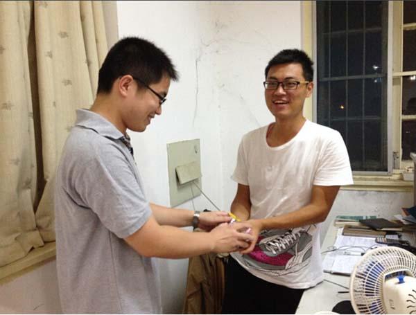 时临中秋佳节,为使班级同学度过一个幸福圆满的中秋节,9月8日,WilliamHill中文官方网站13级研究生5班爱心小分队在该班书记和班长的带领下,来到班级学生的实验室和宿舍,为大家送上月饼,使大家感受到了浓浓的过节氛围。
