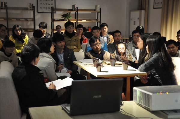 首先,季娟通过ppt向大家介绍了学院近三年各年级同学成绩的几组数据,数据通过各年级各专业平均绩点的变化反映出同学们的学习情况。季老师邀请现场同学就这些数据谈谈直观感受,同学们发言踊跃,对学风建设提出了各种问题和看法。院青协主席汪泽认为绩点不完全等于大学,应考虑全面发展,引人深思。季老师针对同学们的回答,进一步提出了学习与工作支配权重的问题,工研班代表通过班级整体情况向我们展现了三院学子注重学习并积极参与活动,平衡充实的大学生活。
