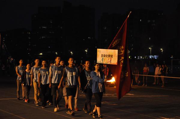 待习习微风拉开了夜幕,接力赛也随之开始。在一段精彩的啦啦操后,各院的运动员迈着矫健的步伐依次入场,赛场上的气氛也渐渐变得紧张起来,各院的首棒火炬手接过由各院领导亲自点燃的火炬之后,在赛道上准备就绪,随着裁判员的枪声响起,整个赛场的氛围急剧升温,比赛也格外激烈起来。