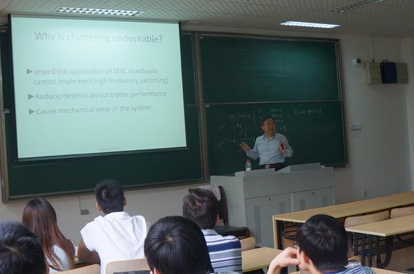 每一节课严老师都讲的激情澎湃,带动了学生学习非线性控制方法的热情,以及学习和研究滑模控制的激情。老师教的认真,学生学的认真。每次课件休息时间,总有学生向严老师请教问题,严老师也是认真解答每一个问题。
