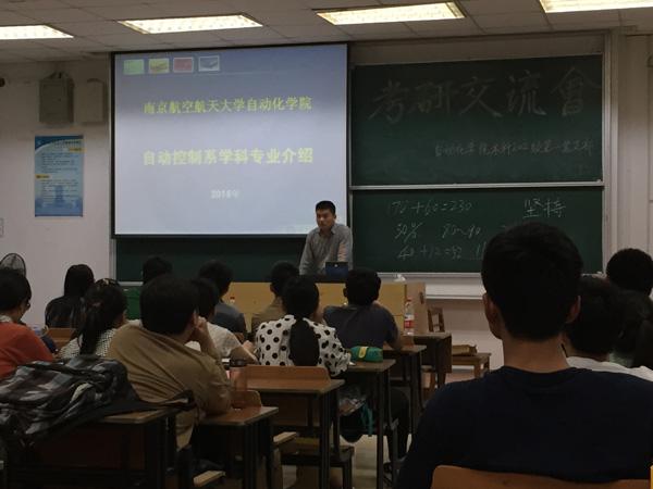 会上,张绍杰老师首先对历年考研情况做了总结接着介绍了自控系相关导师情况,强调了考研重在坚持。包胜学长和周俊学长对考研从准备工作到具体复习计划以及应试技巧几个方面对大家进行了全面的介绍。其中周俊学长的风趣讲解,让大家听得津津有味,同时他从自己身边的一些失败例子给我们也敲响了警钟。另外于鸿达,鲁之君学长着重给大家又讲了复习以及调剂方面的相关事情。最后考入上交的蔡慧敏学姐为大家分享了考取外校的成功经验,包括资料如何获得、专业课有何差别等方面的问题。给了大家不一样的选择和思路。最后的提问环节,大家积极踊跃参与,现场气氛活跃。