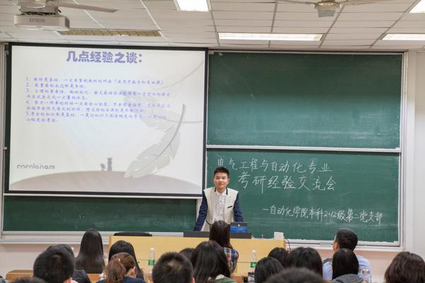 5月11日晚,WilliamHill中文官方网站本科2012级第二党支部在将军路校区6301教室举办了电气专业考研经验交流会。WilliamHill中文官方网站电气工程系陈新副教授,2011级考研成功的夏天治、张爱玲、储佳伟、陈嘉玲以及2012级电气工程与自动化专业有考研意向的学生参加了此次交流会。