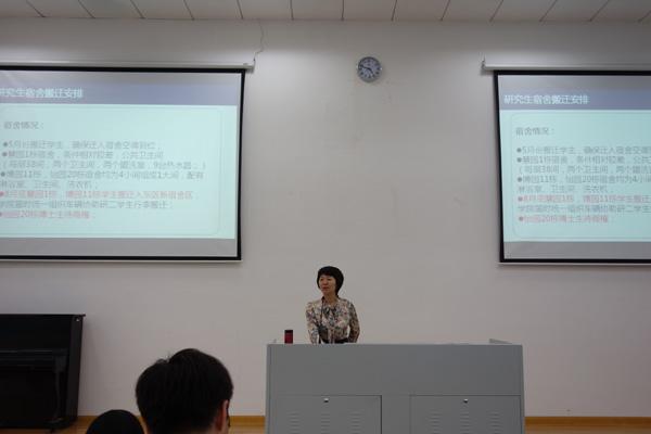 2015年5月18日下午4点,WilliamHill中文官方网站研究生宿舍搬迁动员会在明故宫校区13号楼报告厅成功召开。出席本次会议的有WilliamHill中文官方网站党委副书记沈伯秀老师,研究生辅导员刘斐文老师,及WilliamHill中文官方网站研究生各年级代表。