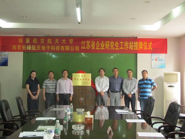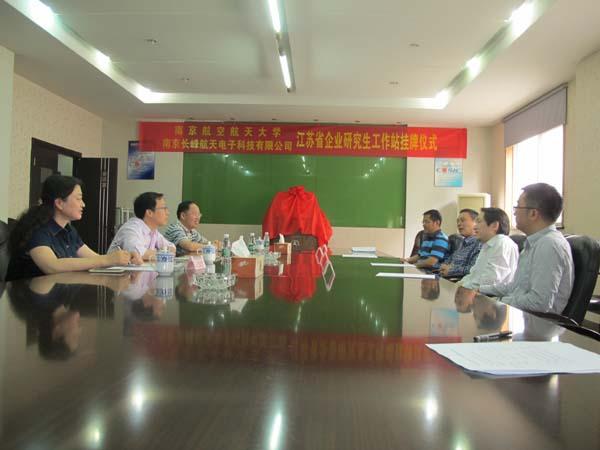 2015年05月25日,williamhill英国中文官网WilliamHill中文官方网站赖际舟副院长与企业联系导师盛守照教授学院教学办主任一起来到南京长峰航天电子科技有限公司,为南航大与长峰航天共建江苏省研究生工作站揭牌。长峰公司副总经理陆晓路、技术质量部主任李永明部出席仪式,仪式由总经理助理钱宇光主持。
