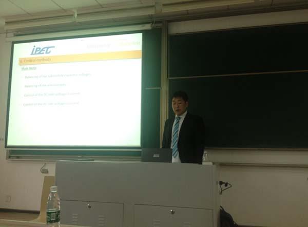 在两个多小时的学术报告中,王也奇博士全面介绍了模块化多电平(MMC)关键技术以及应用情况,重点介绍了不同MMC基本单元的拓扑结构及比较,电容均压、控制策略、基于MMC的直流断路器、以及MMC在电网中应用等,报告内容丰富深入。报告结束后,师生们就学术报告内容与王博士进行了热烈充分交流和探讨。