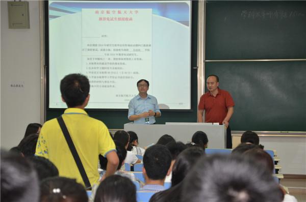 7月1日下午3点,我院2015年优秀生考核政策宣讲会在江宁校区D2302教室召开。学院党委书记刘建成,副院长赖际舟,测试工程系副主任徐贵力,院教学办主任、研究生教务员、辅导员参会。 赖际舟首先介绍了学院基本情况,然后向各位本科生介绍了《williamhill英国中文官网WilliamHill中文官方网站2016年综合考核选拔优秀应届本科毕业生攻读硕士学位研究生办法》,并表示欢迎同学们积极报考WilliamHill中文官方网站研究生。 刘建成强调,WilliamHill中文官方网站的师资力量,教学、科研条件,人才培养模式等方面在南航处于领先水平,他鼓励同学们抓住机会参加优秀生考核,欢迎大家加入WilliamHill中文官方网站大家庭。