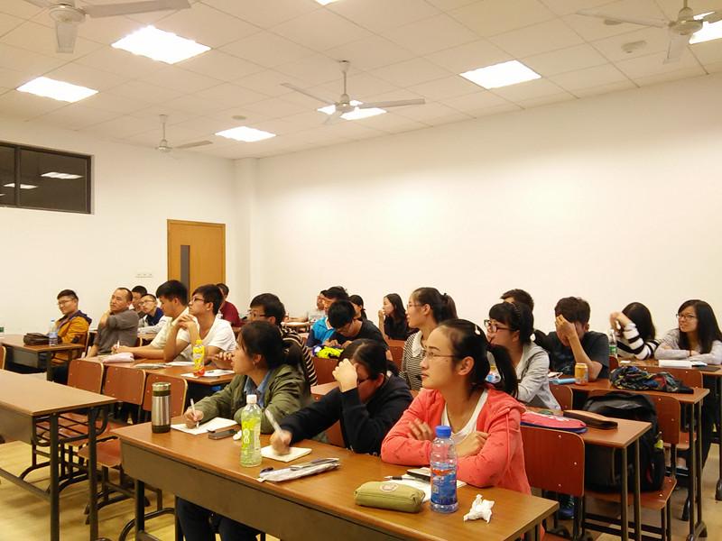 尹彦卿为学弟学妹们介绍了自己参与科创的心得。他首先分享了科创是一种怎样的体验:必须做好吃苦的打算,要有一个良好的身体素质,几天几夜不睡觉是正常的;不能抱着打酱油的心态。其次,他指出扎实的理论基础、必要的动手能力、熟练运用工具软件以及靠谱的团队成员都是科创的助力。最后尹彦卿介绍了一些适合自优班同学参与的科创比赛:①每年11月的校电子电路设计大赛、偶数年暑假的省级电赛、奇数年暑假的全国电赛;②每年11月的“三创”节、奇数年6月省级“挑战杯”比赛、奇数年11月的国家级“挑战杯”比赛;③飞思卡尔智能车比赛等。