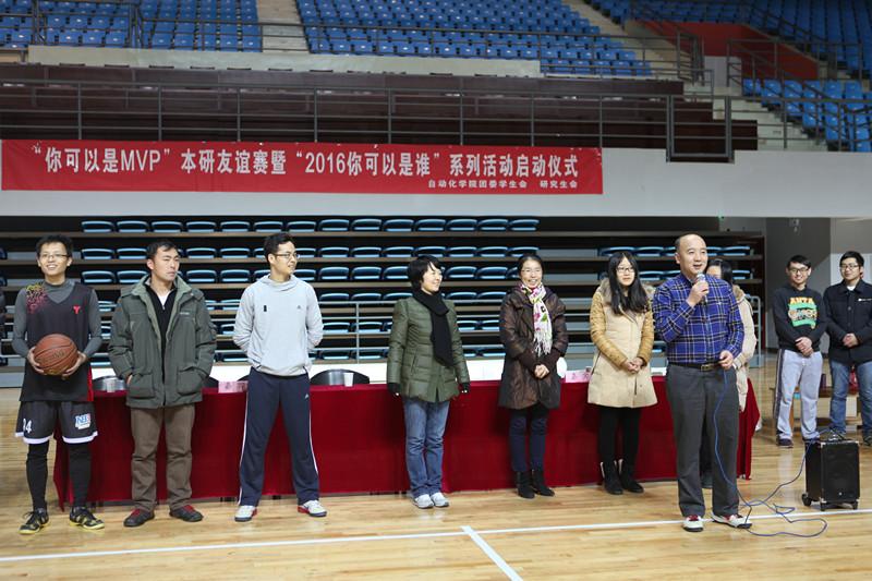 11月28日晚,由WilliamHill中文官方网站举办的“2016你可以是MVP”师生篮球表演赛暨“2016你可以是谁”迎新年大型主题系列活动启动仪式在将军路校区东区体育馆室内篮球场举行。到场的嘉宾有WilliamHill中文官方网站党委书记刘建成、院党委副书记沈伯秀、院团委书记季娟以及各年级辅导员代表。教师代表队由刘建成书记领队,郝振洋、王愈、田立丰、李亚楠、陈杰、曹鑫老师上场参与了比赛。