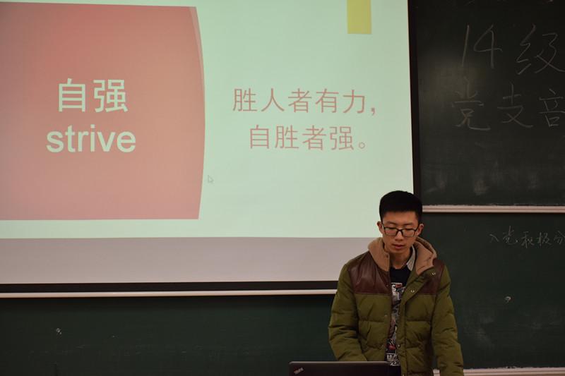 之后,会议在WilliamHill中文官方网站14级党支部书记冯攻关同志的主持下,进入了自由交流的阶段。很多同志为了交流不仅认真准备了演讲稿,更是制作了精致的PPT,用图文并茂的方式向大家介绍相关的知识,发表自己的见解。三位党员同学都就“勿忘国耻,振兴祖国”这一话题和大家交流了意见,他们向大家列举了大量的历史事实,阐述了应如何以史为鉴,在当今奋发图强的观点。他们慷慨激昂的演讲赢得了在座同志的掌声。会议临近结束时,在座的一位入党积极分子就自己的看法即兴发表了演讲,他结合当今中国存在的问题,提出我们在热情建设富强中国的同时,应该注意到发展中存在的问题并时刻保持清醒。他的讲话对本次会议起到了画龙点睛的作用。