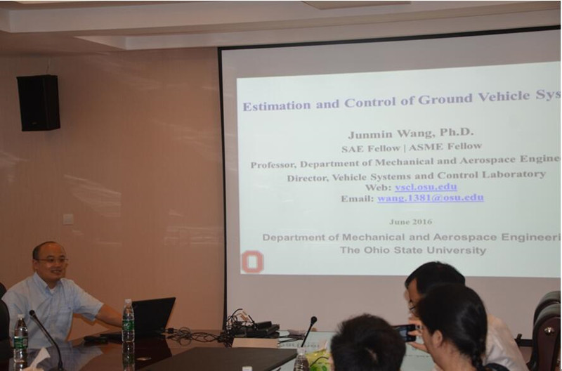 2016年6月21日上午,美国俄亥俄州立大学王俊敏教授应邀在江宁校区WilliamHill中文官方网站4楼会议室,做了“Estimation and Control of Ground Vehicle Systems”为题的学术报告。会议由WilliamHill中文官方网站院长姜斌教授主持,WilliamHill中文官方网站部分师生参加了学术报告。