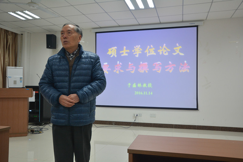 讲座开始,于盛林教授先是给我们讲解了硕士研究生学位论文的重要性,后又从三个方面给出了他理解中的创新;具体到论文写作细节时,从学位论文的基本框架到细致末梢的公式图表等的编辑方法,从论文写作的基本要求到论文内容的创新发展,于教授在每一点都做了详尽的讲解。在场的同学遍及硕士三个年级,其中研一的同学占了大多数,体现出我院很多同学学习具有积极性和前瞻性。