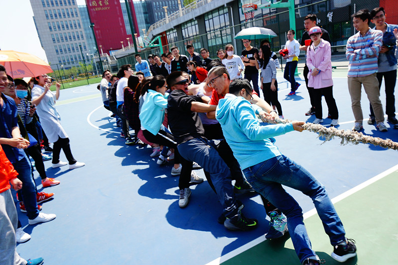 接着,本次“文体月”的首场活动——拔河比赛正式开始。此次比赛共计14支队伍参赛,每队12名男生,6名女生。各队抽签决定分组情况后,就展开了激烈的比拼。随着一声哨响,队员们双手紧握长绳,卯足劲往后拉,啦啦队也在旁边奋力加油。一时间号子声、加油声在篮球场上此起彼伏。经过层层晋级,16级1班和15级6班进入决胜局,争夺冠军。三局两胜的比赛,大家都全心全力,依靠强壮的身体和坚强的意志,16级1班以两局全胜的优势获得冠军,15级5班获得亚军,16级2班和15级1班取得季军。在欢乐愉悦的气氛中,大家在初夏的微风中留下了合影。