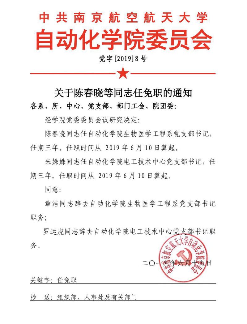 关于陈春晓等同志任免职的通知