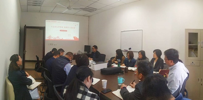 2019年11月14日下午,电子技术中心和电工技术中心两个党支部联合开展主题教育党课,两个支部共16名党员同志参加本次党课,会议由电子技术中心党支部书记崔江主持。党委副书记张跃以“不忘初心担使命,真抓实干促发展”为主题从确立调查研究主题、调查研究组织实施情况、学院综合改革落实推进情况、调研中反映的突出问题及分析、解决问题的思路和举措等五个方面详细讲解了学院将主题教育落实到实际工作中的开展情况。