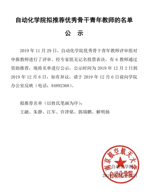 WilliamHill中文官方网站拟推荐优秀骨干青年教师的名单公示