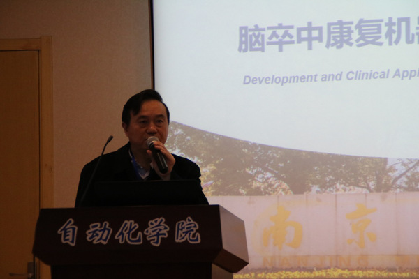 李建清,南京医科大学教授做了主题为“脑卒中康复机器人的研制和临床应用”的发言,李教授介绍了康复机器人的相关知识和发展,讲述了自己的科研生涯以及学术成果,并谈了自己在做人做学问方面的经验。大家都深受感触,应该在科研的道路上克服困难,奋勇前行。