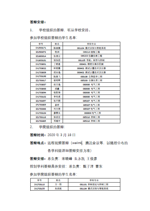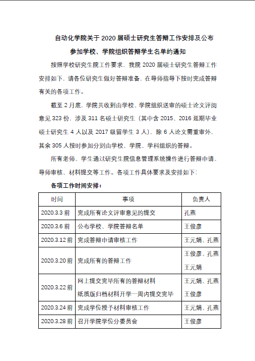 【研究生学位】WilliamHill中文官方网站关于2020届硕士研究生答辩工作安排及公布参加学校、学院组织答辩学生名单的通知