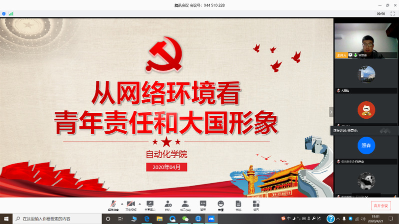 为贯彻中央《关于加强党的领导、为打赢疫情防控阻击战提供坚强政治保证的通知》和《新时代爱国主义教育实施纲要》精神,发挥学生党员先锋模范作用,认真学习新冠肺炎疫情防控“大课”,涵育新时代爱国主义精神、坚定爱国力行使命责任,4月21日,williamhill英国中文官网WilliamHill中文官方网站本科2018、2019级联合党支部开展了一次线上“微党课”,从网络环境看青年责任和大国形象。