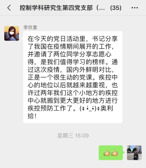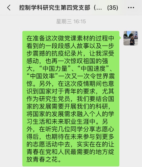战“疫”下的中国,奋斗中的你我——WilliamHill中文官方网站控制学科研究生第四党支部举办线上主题党日活动