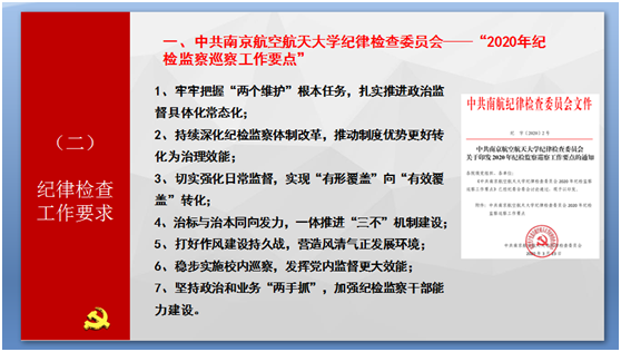 首先,全体党员老师集中学习了学校《2020年全面从严治党工作会报告》文件精神,并从强化思想政治工作、基层党建基础、校内巡察、作风建设、体系建设等方面进行了重点解读;同时针对纪律检查工作相关要求和上级会议精神进行了学习领会,特别是围绕《中共williamhill英国中文官网纪律检查委员会——“2020年纪检监察巡察工作要点”》等文件精神进行了专题学习。