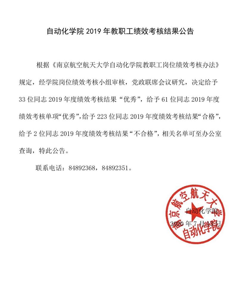 WilliamHill中文官方网站2019年教职工绩效考核结果公告