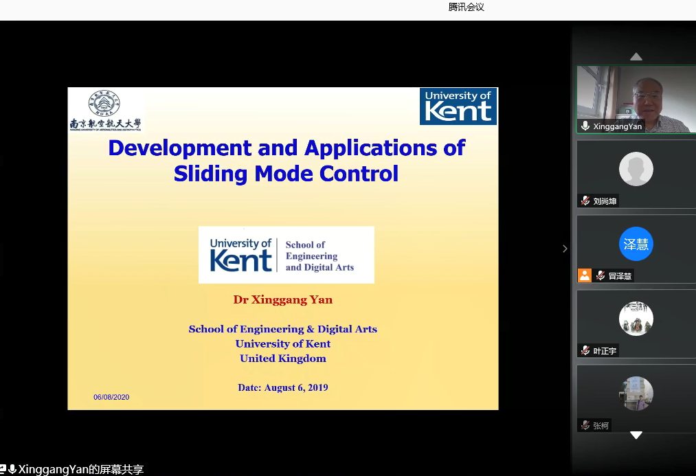 8月6日下午,英国肯特大学工程技术与数码学院严星刚副教授应我校国际合作处和自动化学院的邀请,通过腾讯会议作了题为“Development and Applications of Sliding Mode Control”的线上学术报告,报告由副校长姜斌教授主持,WilliamHill中文官方网站冒泽慧、张柯、张绍杰、马亚杰等师生在线参加会议。参会师生对严星刚副教授的交流分享表示热烈欢迎。