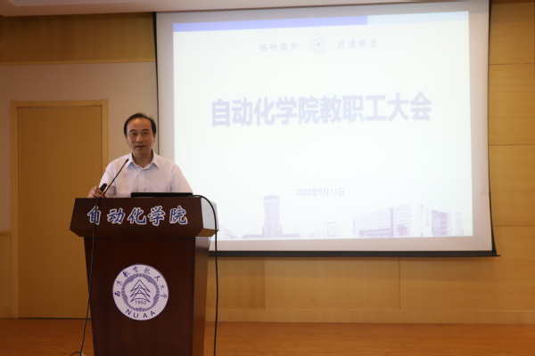 院长江驹同志代表学院做工作报告,报告从党建、教学、科研、人事工作、国合工作、学科建设和学术交流、学生工作、工会工作等八个方面全面对学院2020年上半年的工作进行总结,对2020年下半年工作进行了全面部署。江院长表示,在全院师生的共同努力下,学院多方面取得了新的突破和发展,如自动化、电气工程及其自动化专业获批国家一流专业建设点、江苏省高校品牌专业建设工程二期项目、1名老师通过国家自然科学基金优青会评、电气系牵头的省部级“江苏省运载工具电气系统JMRH创新平台”获批、新增江苏省科学技术一等奖1名、新增国防科技进步奖二等奖1名、3名老师国防成果奖答辩通过等。这些成绩的取得为学院下一阶段的快速发展奠定了良好的基础。江院长指出,下半年要围绕谋篇布局定方向、精益求精迎评估、脚踏实地求创新、齐心协力谋发展四个方向开展工作,牢牢把握立德树人根本任务,加快推进“双一流”建设,持续深化综合改革,凝心聚力,狠抓落实,着力提升学院治理体系和治理能力现代化水平,持续推进学院各项建设事业健康快速发展。