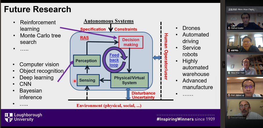 916日的研讨会分别由williamhill英国中文官网WilliamHill中文官方网站王融、陆宁云、田祥瑞和张绍杰四位教授主持。新南威尔士大学的Joon Wayn CHEONG博士、williamhill英国中文官网的许睿、Hamed Badihi和沈俊教授、伦敦城市大学的Olga Limantseva博士以及爱丁堡大学的Shuo Li博士共六位国内外科研学者向大家分享了测量控制、飞行器导航等无人系统导航、制导与控制方面的相关发展情况。
