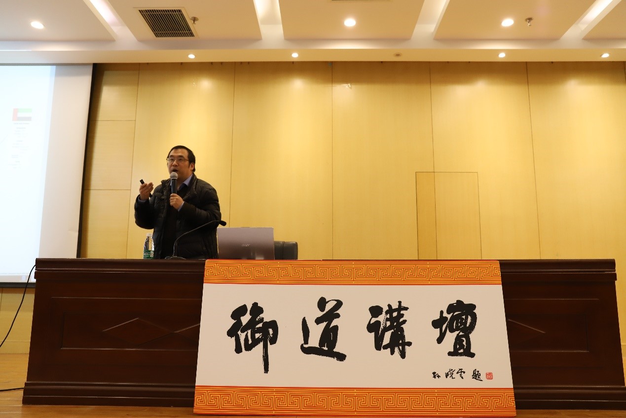 随后,吴冰冰教授生动全面地介绍了贯穿中东地区的伊斯兰教文化,结合自身在中东考察的工作经历,分析了当地的风俗习惯和人文情怀。讲座内容生动活泼,讲述语言诙谐风趣,讲座现场氛围较好,报告厅传来阵阵欢笑。