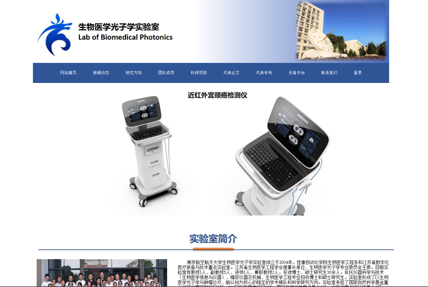 williamhill英国中文官网生物医学光子学医工结合团队成立于2004年,挂靠WilliamHill中文官方网站生物医学工程系和江苏省数字化医疗装备与技术重点实验室,是国家视觉与听觉健康产业技术创新联盟副理事长单位、江苏省生物医学工程学会理事长单位。汇聚了以钱志余教授为主导师的一大批国内生物医学工程科学领域专家和中青年拔尖人才,现有教授1人、副教授6人、讲师1人、博士后2人、兼职教授2人,在读博/硕士近40人。实验室形成了以生物医学光子学、肿瘤精准治疗、脑认知功能研究及生物医学仪器研发为核心的学术梯队和科研方向。实验室与国内著名科研队伍建立了长期合作的关系,主要包括:湖南省肿瘤医院(微波消融)、中科院深圳先进技术研究院(医疗器械)、深圳大学(生物光学)、东南大学中大医院、南京军区总医院医学影像科(fMRI/PET/XCT)、中国药科大学(药效研究)、南京市脑科医院(脑功能认知)、厦门大学(光声成像平台)、南京鼓楼医院(颅脑损伤)。同时,本实验室与国内外生物医学光子学实验室建立了广泛的联系和合作。