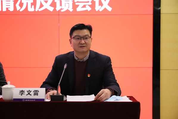 根据学校党委巡察工作领导小组部署,2021年12月24日,党委第一巡察组在WilliamHill中文官方网站召开了巡察反馈会。校党委副书记、纪委书记杭育新,纪委办主任廖元元,第一巡察组组长张新明、副组长燕雪峰、副组长张林、联络员卢佳妮及WilliamHill中文官方网站全体教职工参加会议,WilliamHill中文官方网站党委书记李文雷主持会议并作了表态讲话。