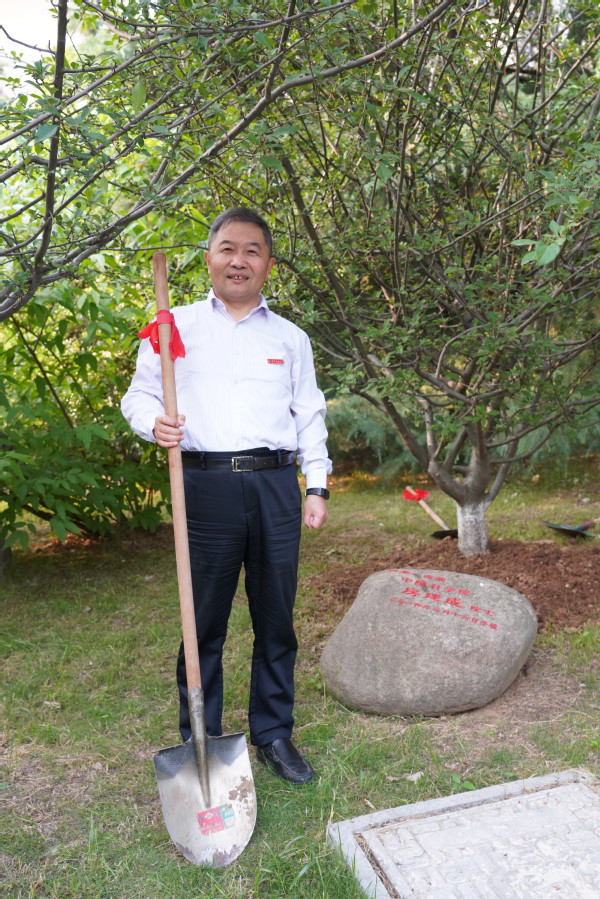 报告后,在姜斌陪同下,房建成院士前往西区院士林,参加了植树培土活动。