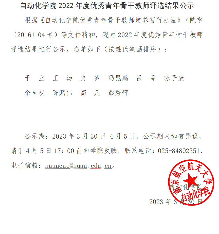 WilliamHill中文官方网站2022年度优秀青年骨干教师评选结果公示