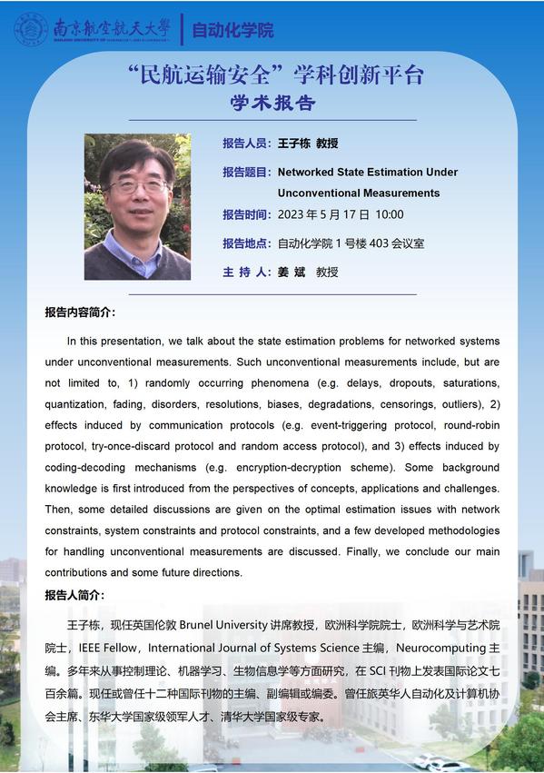 【学术报告】Networked State Estimation Under Unconventional Measurements