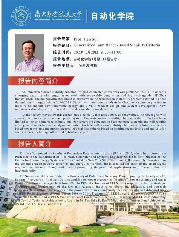 【学术报告】Generalized Immittance-Based Stability Criteria
