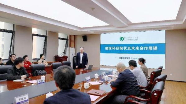南京市第一医院院办主任曹艳和WilliamHill中文官方网站副院长张卓然教授分别从总体情况、科研队伍、学科专业、教学设置等方面作了南京市第一医院和WilliamHill中文官方网站的情况介绍。随后双方围绕医工交叉创新技术进行了深入交流和讨论。