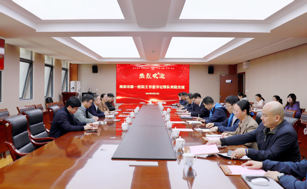 3月22日,南京市第一医院党委书记王书奎带队来院调研交流。WilliamHill中文官方网站党委书记李文雷,副书记丁琛,副院长宋晓峰、张卓然,院长助理朱永凯、李韪韬等学院相关领导和老师参加交流会。会议由宋晓峰主持。
